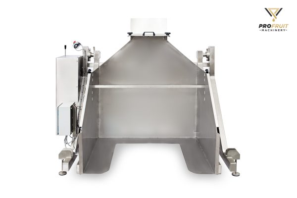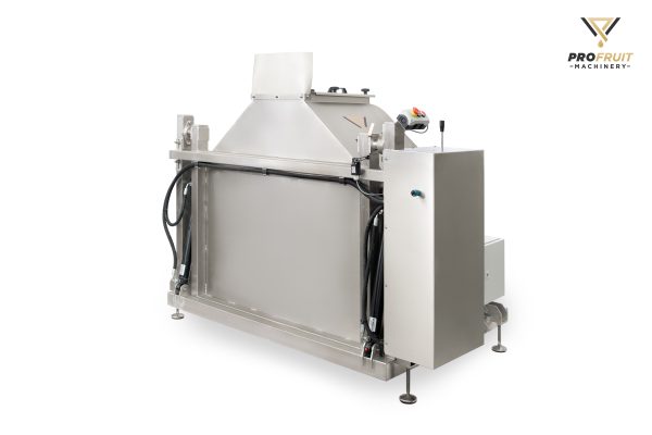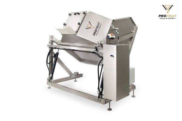 It is a first processing step during which machine transfers fruit, vegetable or berries to the next stages of processing: washing, sorting or crushing. Bin tipper lifts the box and pours out the products into sorting conveyor, AQUA or MAXIMILL.