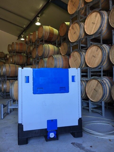 Used extensively in the wine industry for small volumes. Horens 1,000L IBC for food grade liquid transportation.