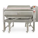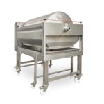 After pressing, membranes is deflated, drum is rotated, lid is opened and pressed mash comes out of the drum to the bin or conveyor. To completely empty the press, the rotation of the drum is also used.