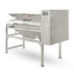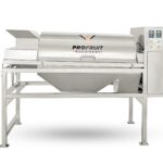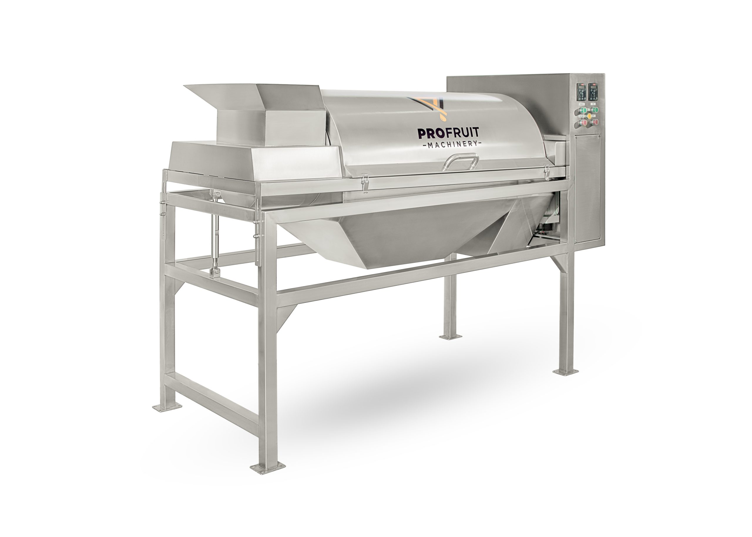 Fruits are fed through the hopper into an adjustable speed two-stage breaking system – rotating sieve. The fruit’s outer peel is broken open, without crushing the arils inside.