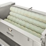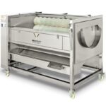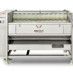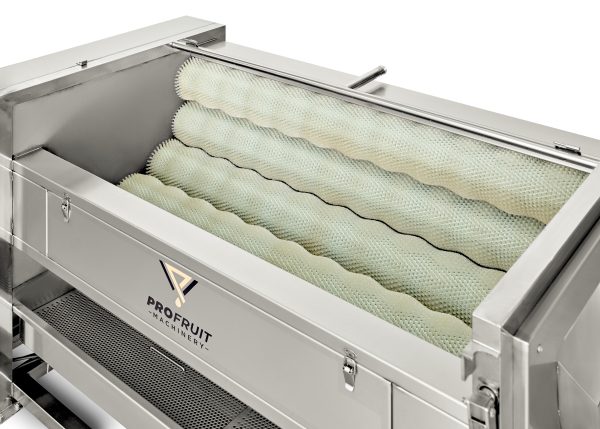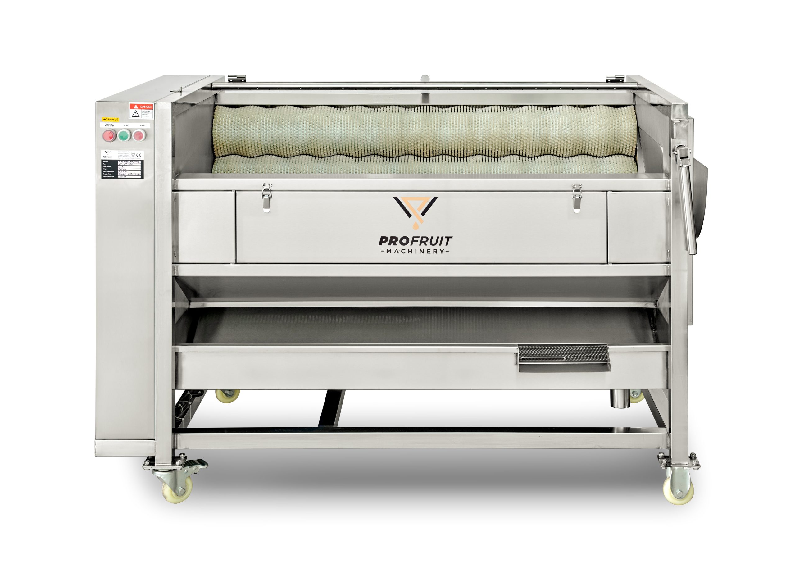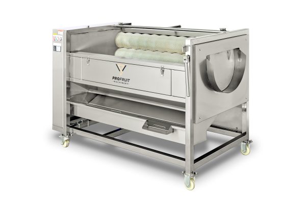 Pro-fruit Root Vegetable Peeler, Washer & Polisher machine washes, peels, and polishes potatoes, carrots, ginger, beets, and other root vegetables, making it essential for preparation for juice pressing, commercial kitchens and food processors.