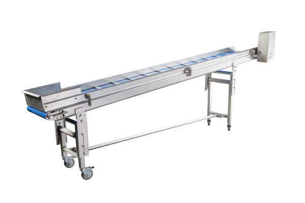 This Sorting conveyor transports products from one machine to the other. It can be used in two ways.